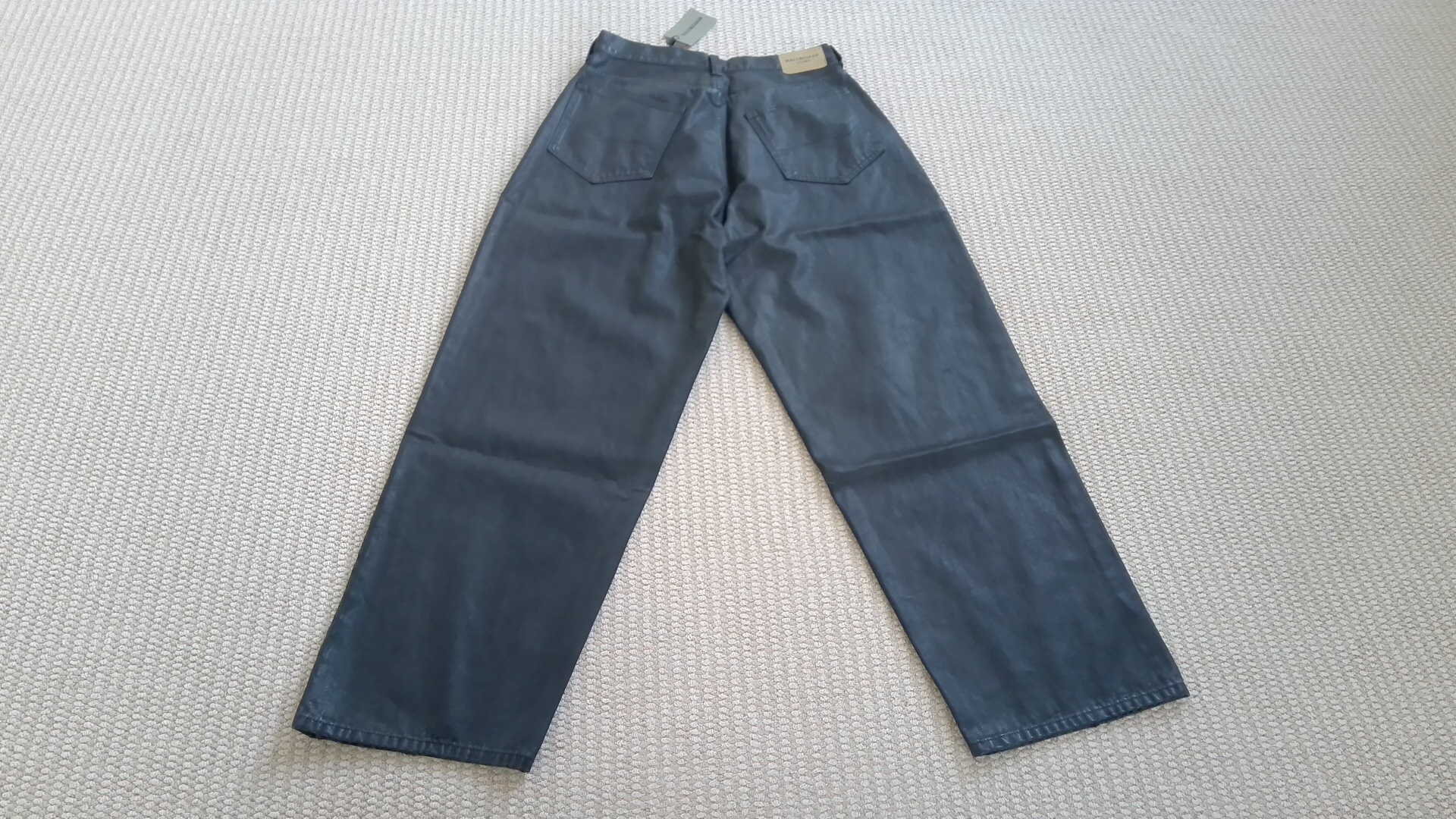 BMC Heavy Industry Large baggy black brush wax coated silhouette jeans wax face pants same style